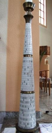Crkva je arhitektonski oblikovana sa suvremenim geometrijskim rasterima longitudinalne osi,